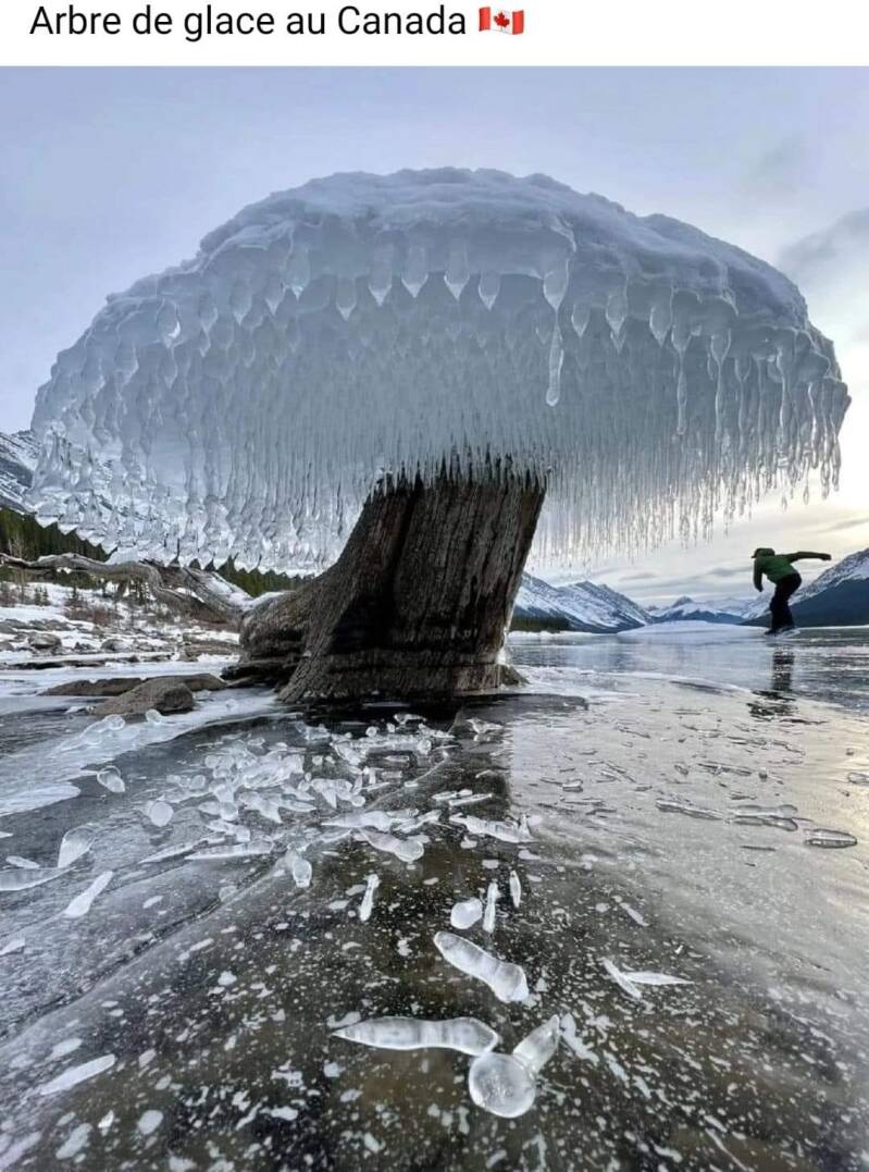 Ce que vous voyez, c'est un arbre de glace sculpté par le vent, formé lors du brouillard gelé et des vents arctiques impitacables couchent de la glace dans une direction pendant de nombreuses heures. Ces formes incroyables n'apparaissent que dans certains des environnements les plus froids et les plus extrêmes sur Terre.