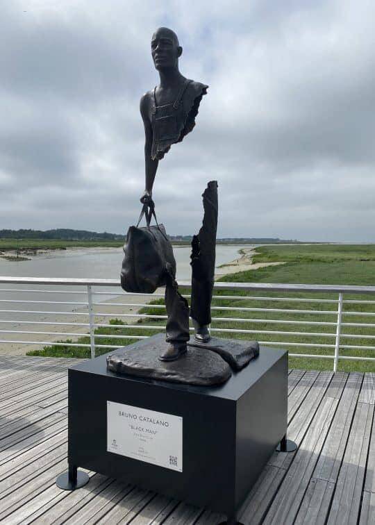 22 avril 2024 : Installé sur l'estran de Saint-Brevin-les-Pins en Loire-Atlantique, « Serpent d’océan » fut réalisé par l’artiste chinois Huang Yong Ping en 2012. Mesurant 130 mètres de longueur, il s’agit d’une sculpture monumentale en aluminium représentant le squelette d’une immense créature fantastique. Apparaissant dans son entièreté à marée basse, l’œuvre se caractérise par un corps ondulant se terminant par une gueule grande ouverte. Sa forme renvoie à celle du pont voisin de Saint-Nazaire puisque les vertèbres du reptile font directement écho aux carrelets de pêche. Destiné à être envahi par la végétation et la faune marine, le site se dévoile aux visiteurs comme issu d’une récente fouille archéologique.